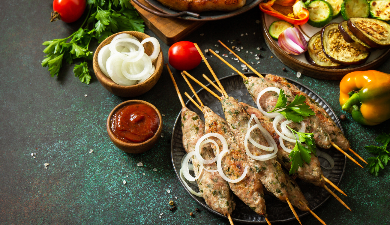 Cubes of marinated lamb usually on a skewer, served with rice or fries, salad, bread & Le Rumi Signature sauce