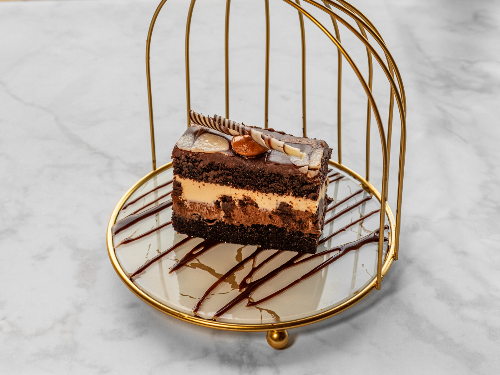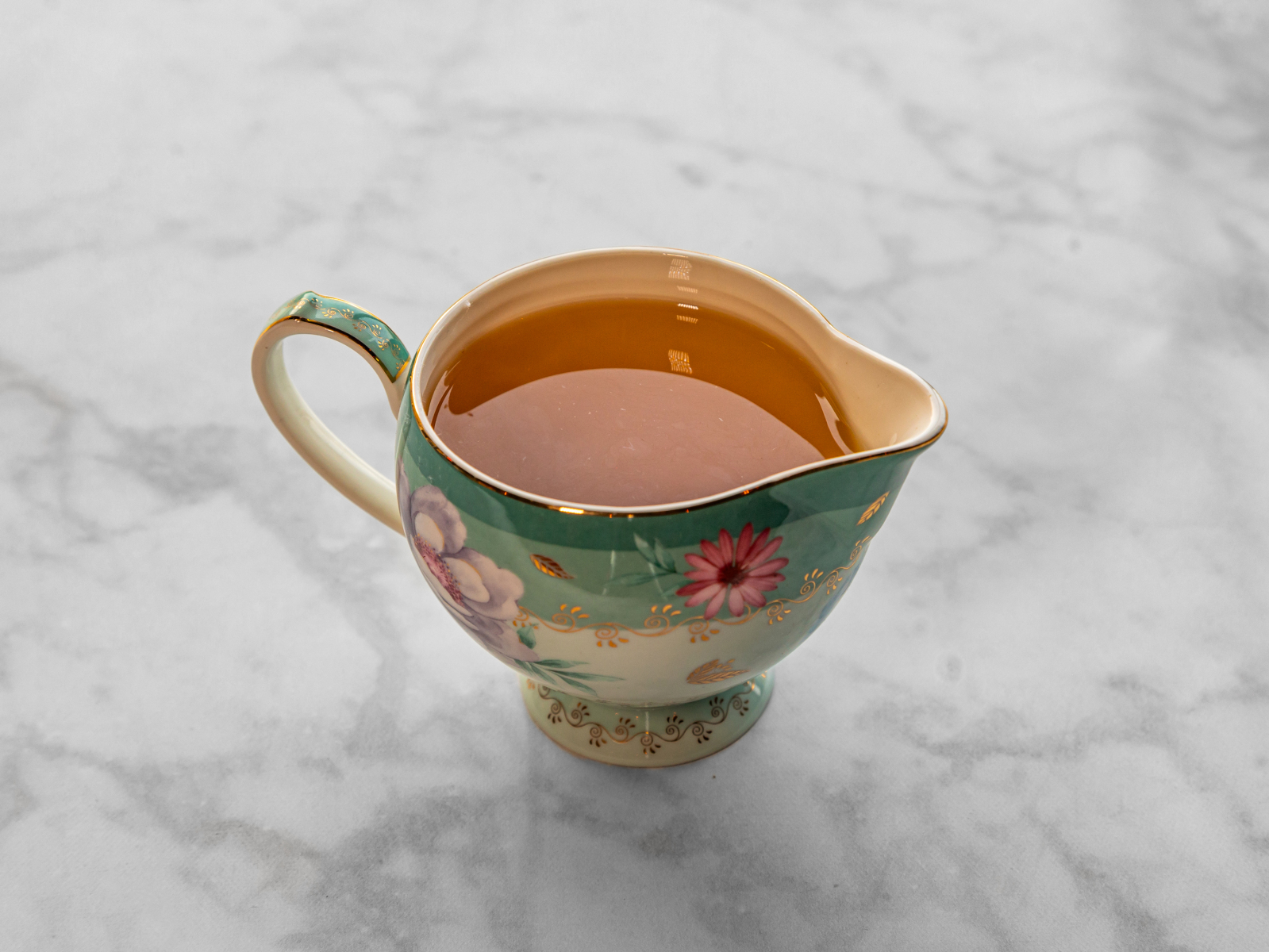 Glass of tea and traditional pistachio baklava on marble table