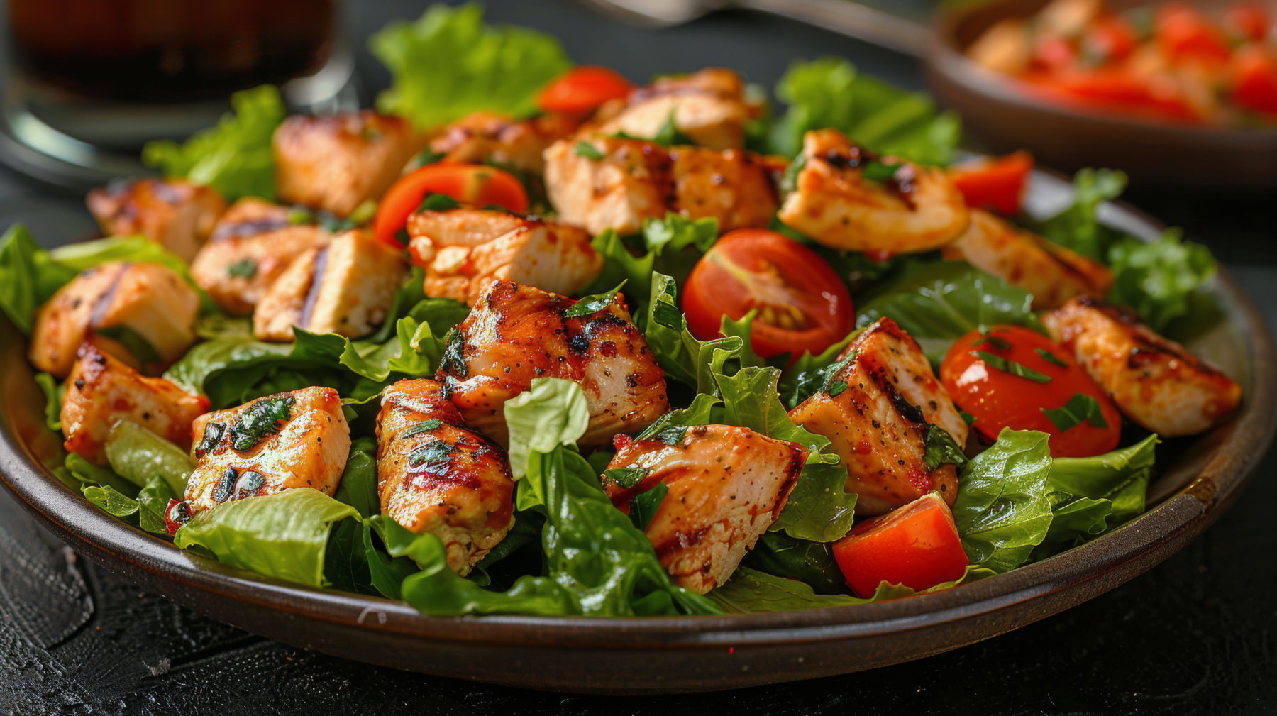 Plate of Chicken Salad With Tomatoes and Lettuce