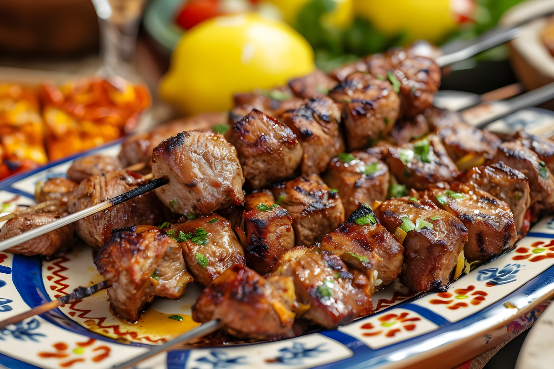 Grilling juicy kebabs in the kitchen culinary delight cozy atmosphere background of fresh ingredients