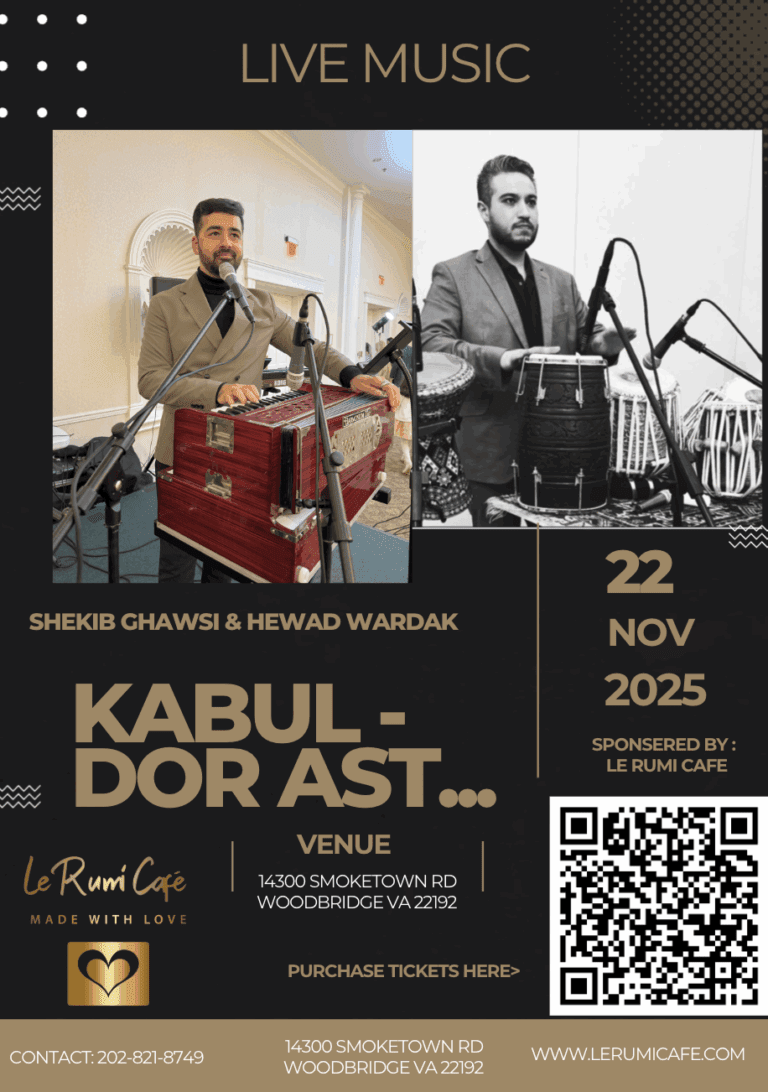 Join us for an unforgettable evening of Afghan music, culture, and community at Le Rumi Cafe! Enjoy live performances by Shekib Ghawsi and Hewad Wardak, blending soulful melodies with vibrant rhythms that will fill the night with energy and emotion.